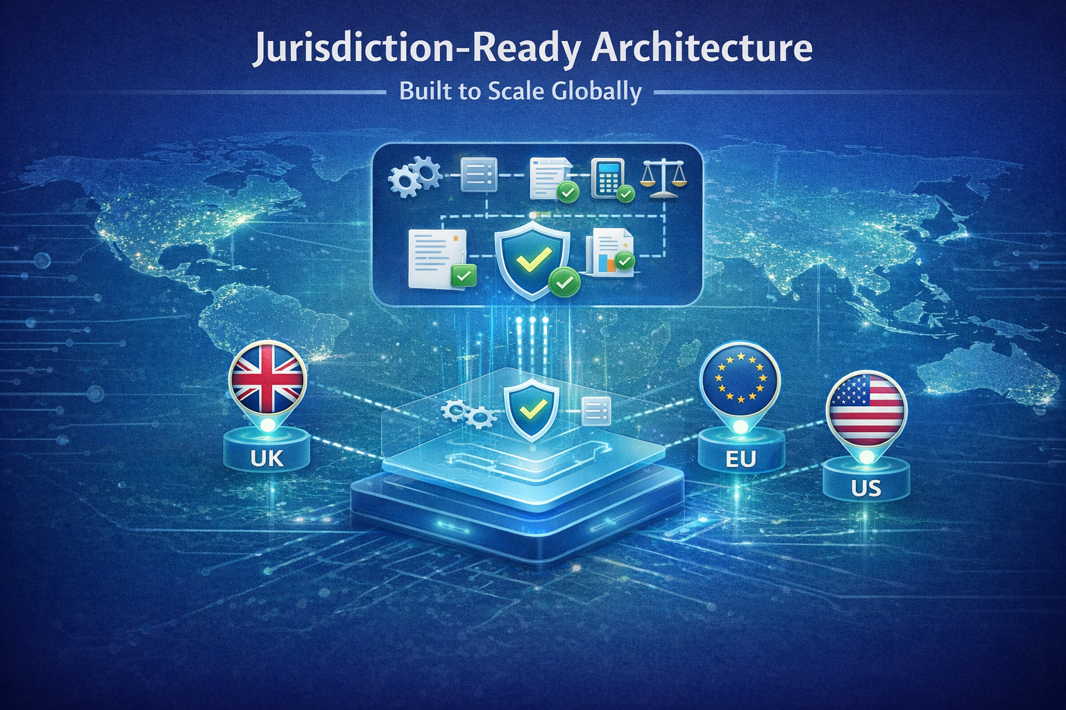 The platform separates regulatory logic from execution, allowing expansion across regions (UK, EU, US) without rebuilding the system, making it future-ready for global compliance.