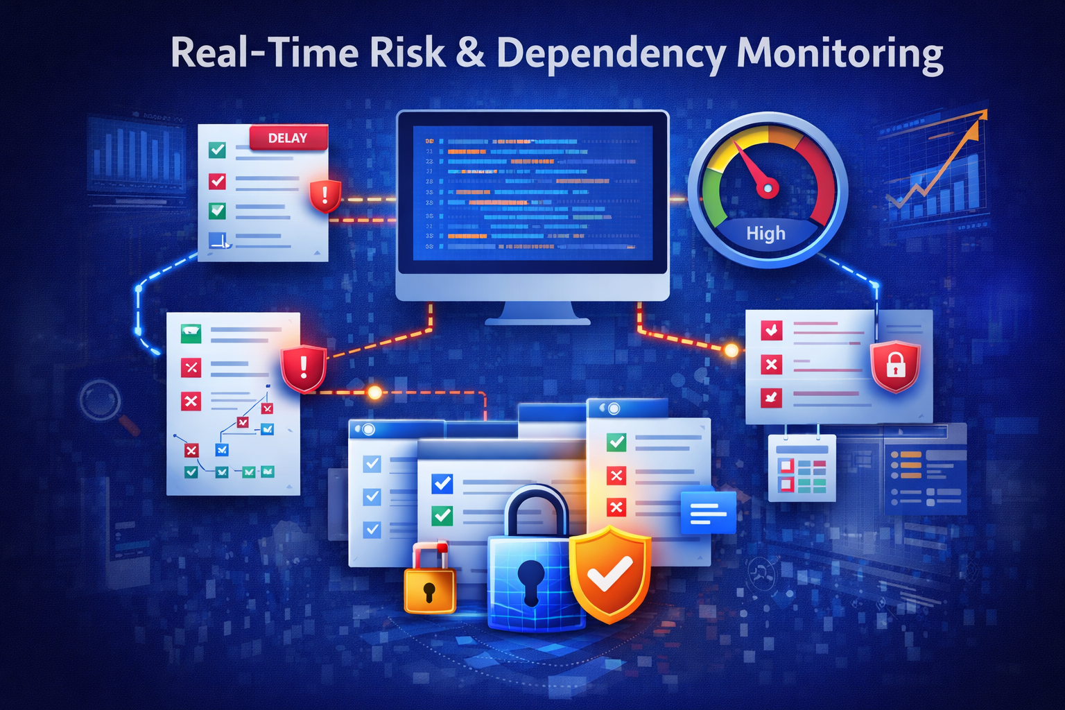 The system continuously evaluates compliance status and detects cascading risks across obligations. If one task is delayed, it automatically identifies downstream impact, helping businesses act before penalties occur.