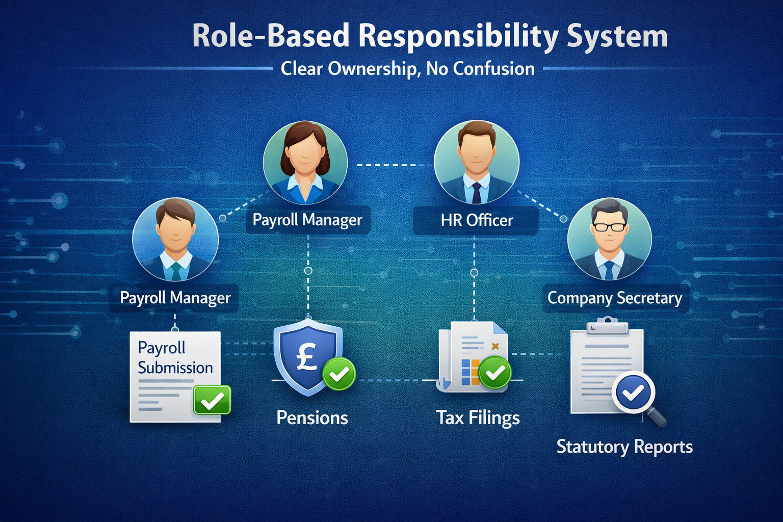 Each obligation is assigned to specific roles within the business. Responsibility persists even when staff change, ensuring continuity and eliminating accountability gaps.